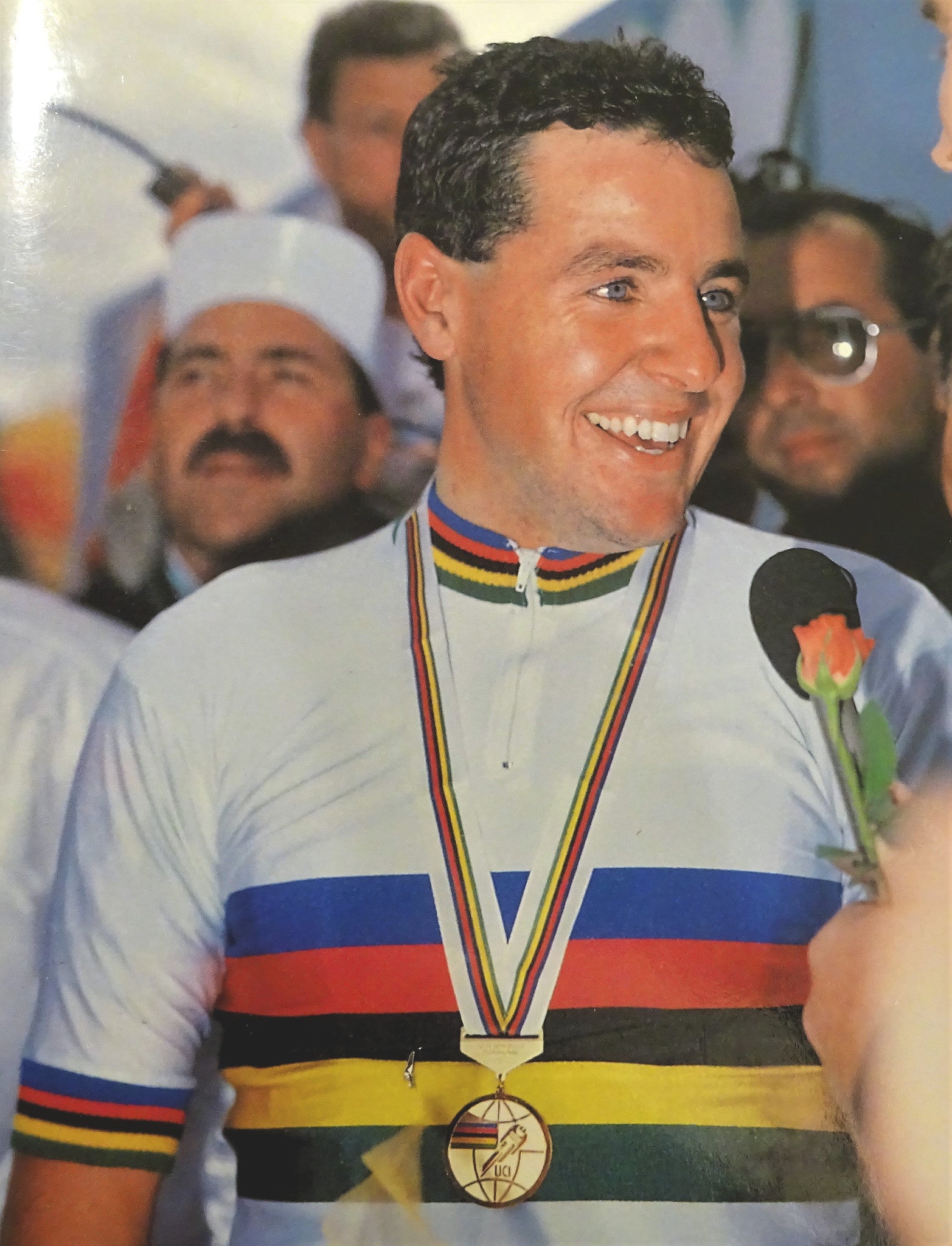 Come September, the UCI World Road Race Championships circuit in Villach, Austria was wet, brutal, and tactical. Roche entered nominally to ride for his compatriot Sean Kelly, whose form made him the natural favourite. He guarded, he shadowed, he covered moves.