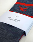 These socks are super soft and the perfect length. Each sock features twin stripes and jaquard Fausto heron logo, plus Handmade branding on the foot bed.