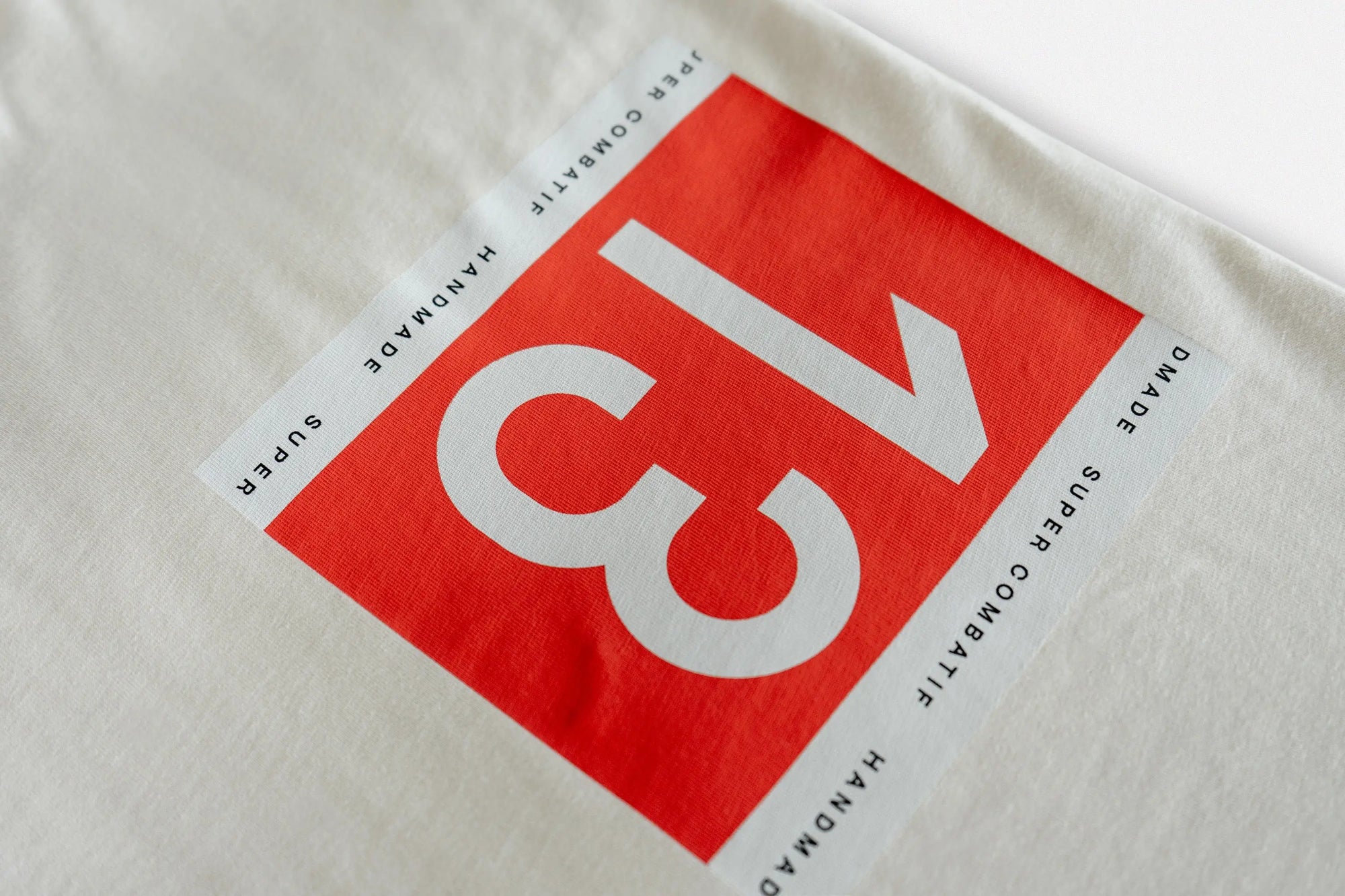 Dossard 13 Super Combatif t-shirt in Ecru off-white, with cycling race number style 13 rear detail. For cycling enthusiasts, made by The Handmade Cyclist.